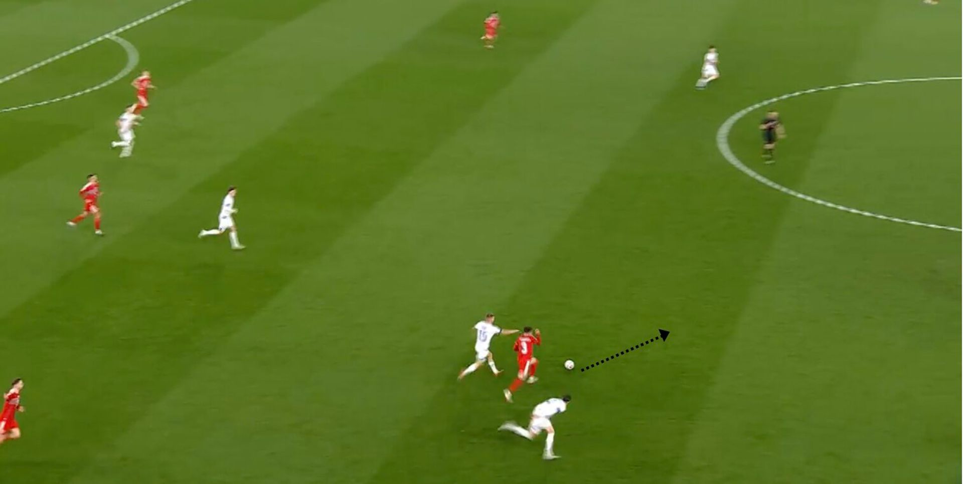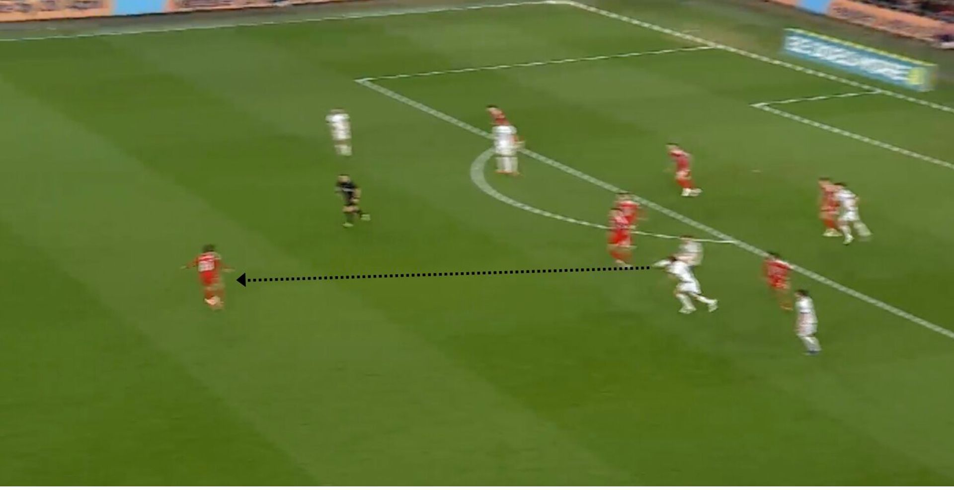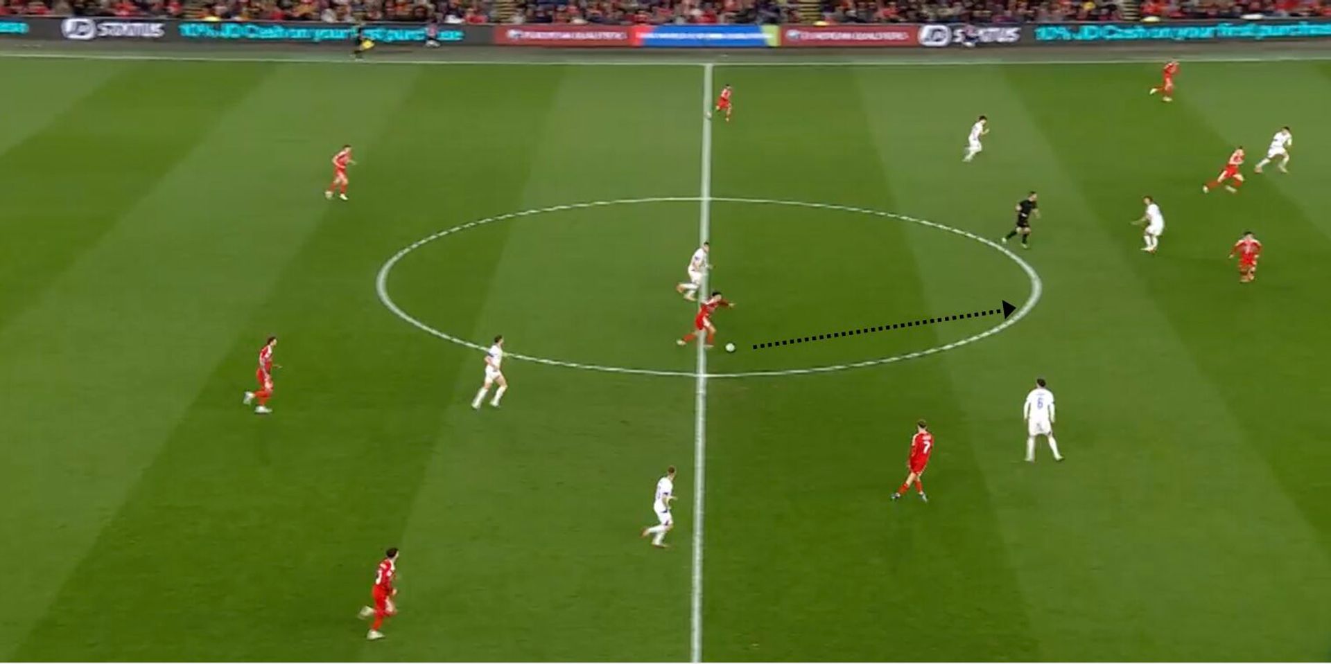 Se il centrale del Sassuolo dovesse alzarsi nel mezzo spazio sulla nostra mezzala destra (Barella presumibilmente), si potrebbero creare delle combinazioni di catena per permettere proprio alla mezzala di ricevere nello spazio liberato dall'uscita del difensore, come aveva fatto il Galles nell’azione qui sotto: