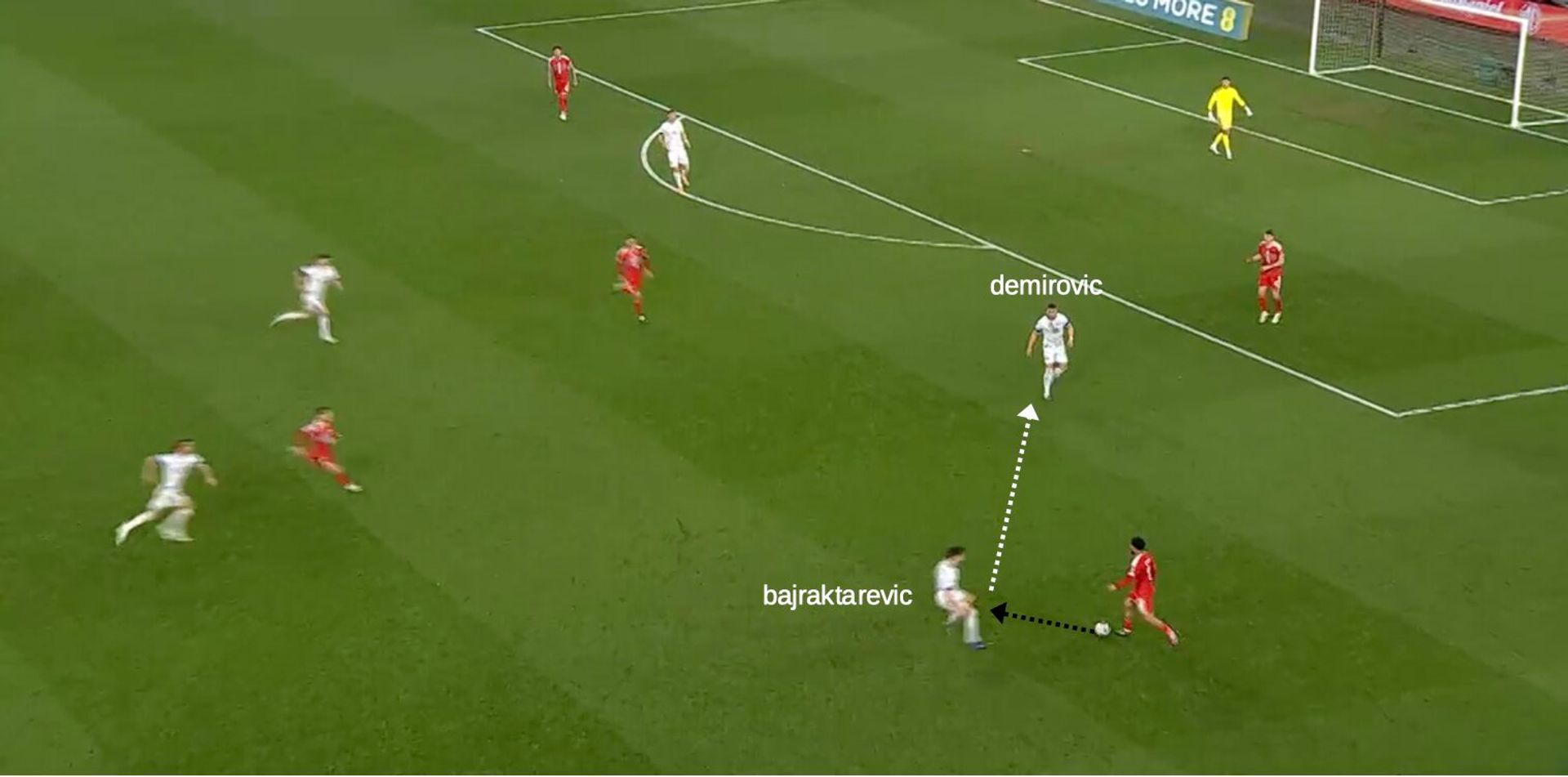 Ovviamente, non dovremo ignorare le fasi di gioco più statiche. Il 4-4-2 bosniaco di solito diventa un 4-2-4 o un 3-2-5 se Dedić si alza sulla linea degli attaccanti. I numeri, in ogni caso, servono a poco. La fase offensiva di Barbarez segue sviluppi piuttosto semplici, non si nutre di chissà quale varietà posizionale. A nobilitarla, però, ci sono le qualità individuali dei suoi interpreti.