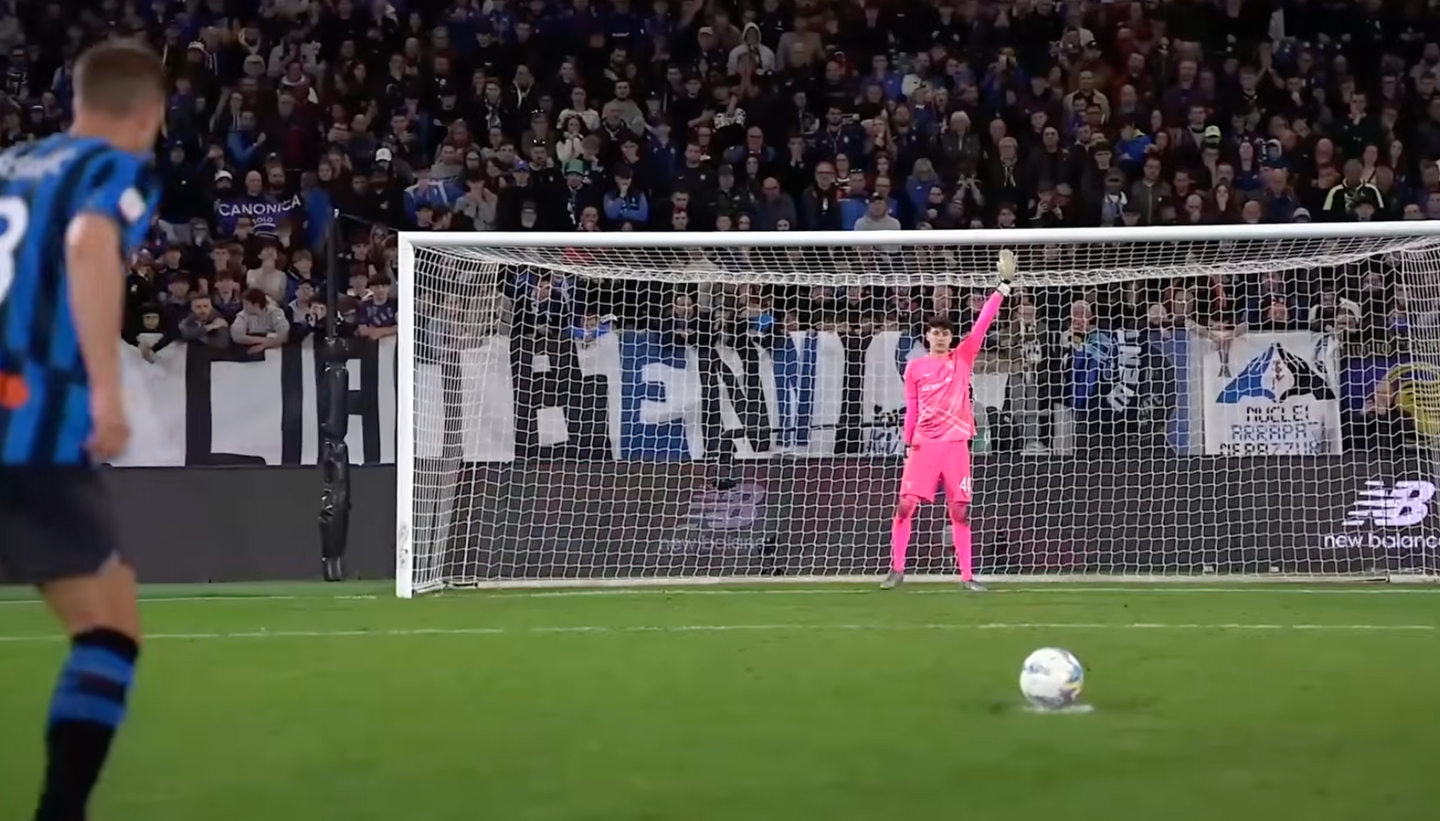 Il rigore di De Ketelaere è già decisivo. Se lo sbaglia, la Lazio vince. Motta a questo punto alza il braccio quasi con arroganza, da sbruffone, già sapendo cosa succederà. De Ketelaere guarda quel braccio come ipnotizzato, è impossibile per lui non fare quello che il braccio di Motta gli sta chiedendo. Oppure De Ketelaere, confuso da quello che ha fatto Carnesecchi prima, si sta chiedendo: non è che vuole farmi pensare che si tufferà alla sua sinistra e invece poi si tufferà alla sua destra? Non è che magari anche questa è una finta di una finta?