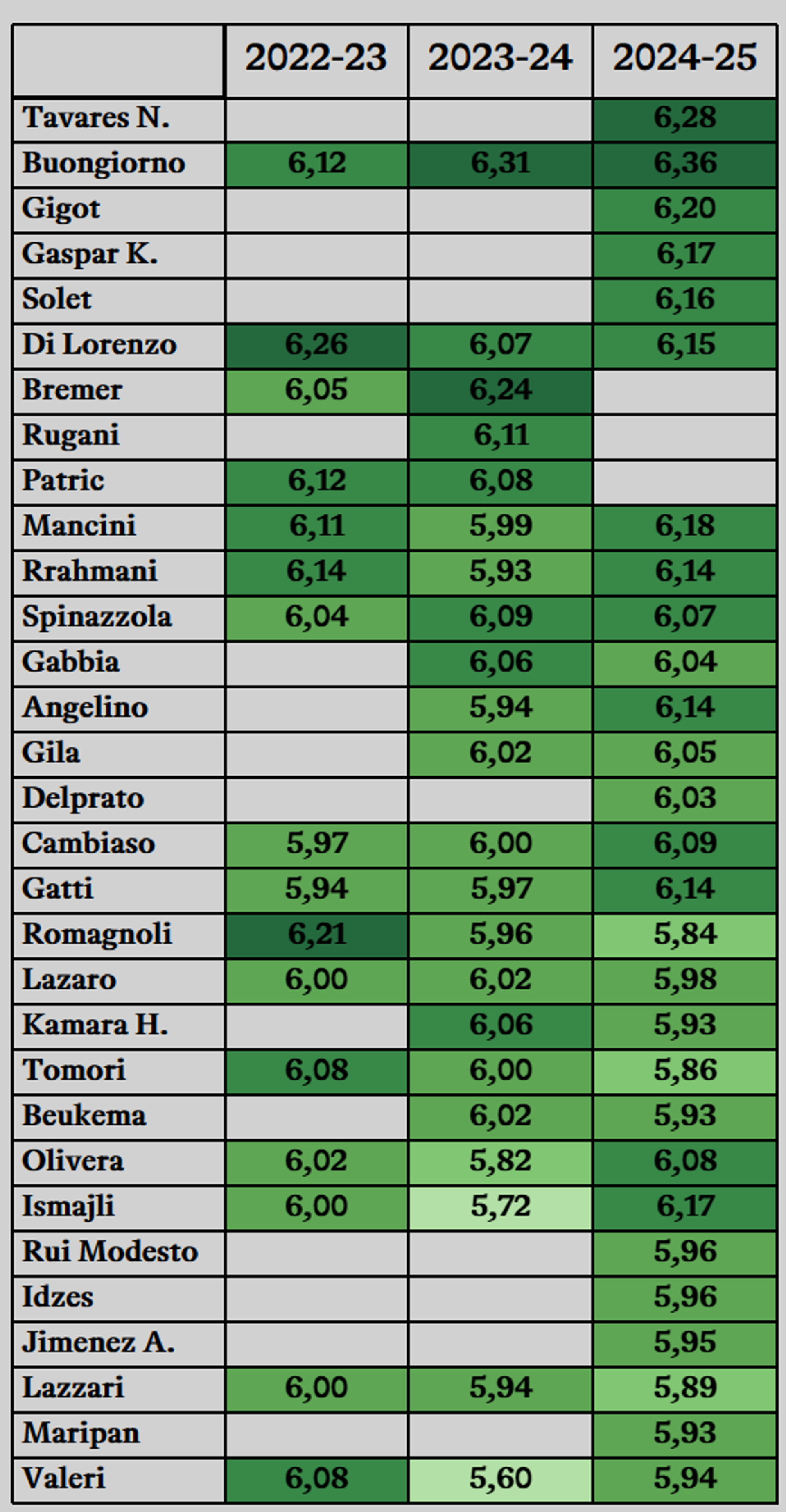 La stagione di Pellegrini è stata estremamente negativa ma la sua importanza al Fantacalcio viene spesso sottovalutata. Nel 2023/24 ha avuto 7.16 di fantamedia, l’anno prima 6.59. È un giocatore costante, almeno al Fantacalcio. Viene da un grosso infortunio e la sua situazione va monitorata in chiave mercato. Al momento le sue quotazioni sono bassissime. Forse troppo.