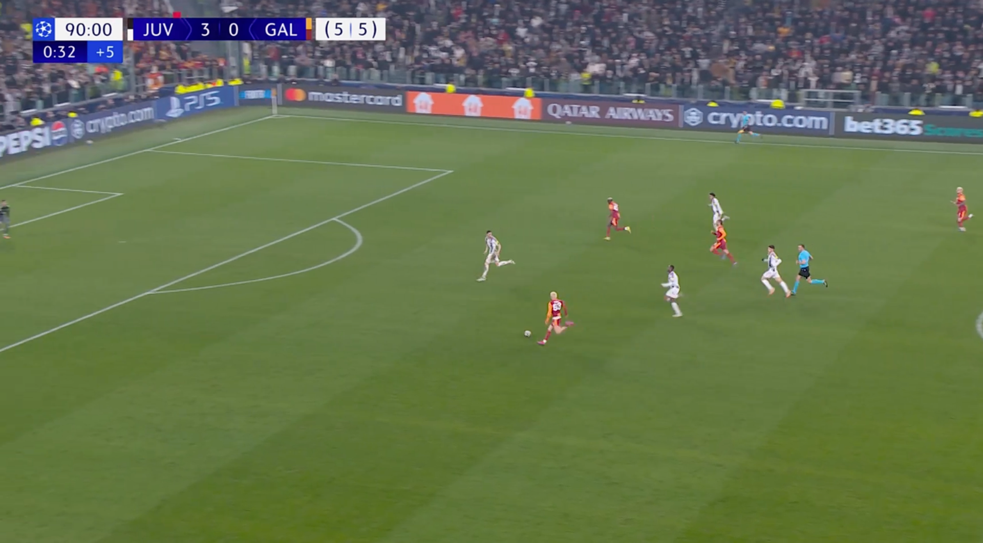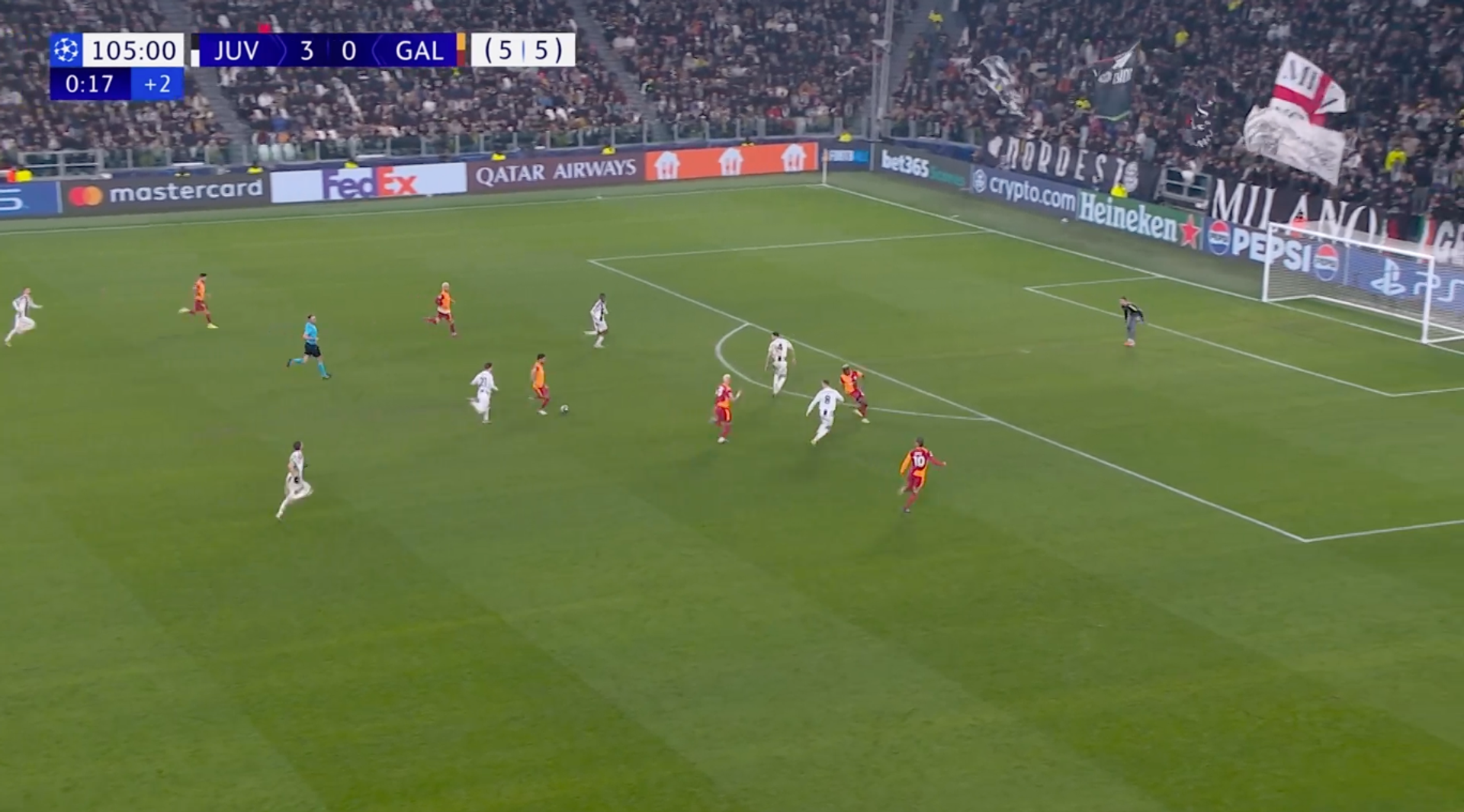 Ieri, nella conferenza pre-partita, Spalletti aveva dichiarato che «il futuro viene dopo questa partita qui», creando di fatto il contesto psicologico da ultimo treno all’interno del quale si è giocata la partita. Nei primi 27 minuti il possesso della Juventus ha sfiorato il 60%, grazie a un pressing che non permetteva al Galatasaray di gestire il pallone dal basso e una catena sinistra che si è rivelata di fatto incontenibile per la squadra turca.